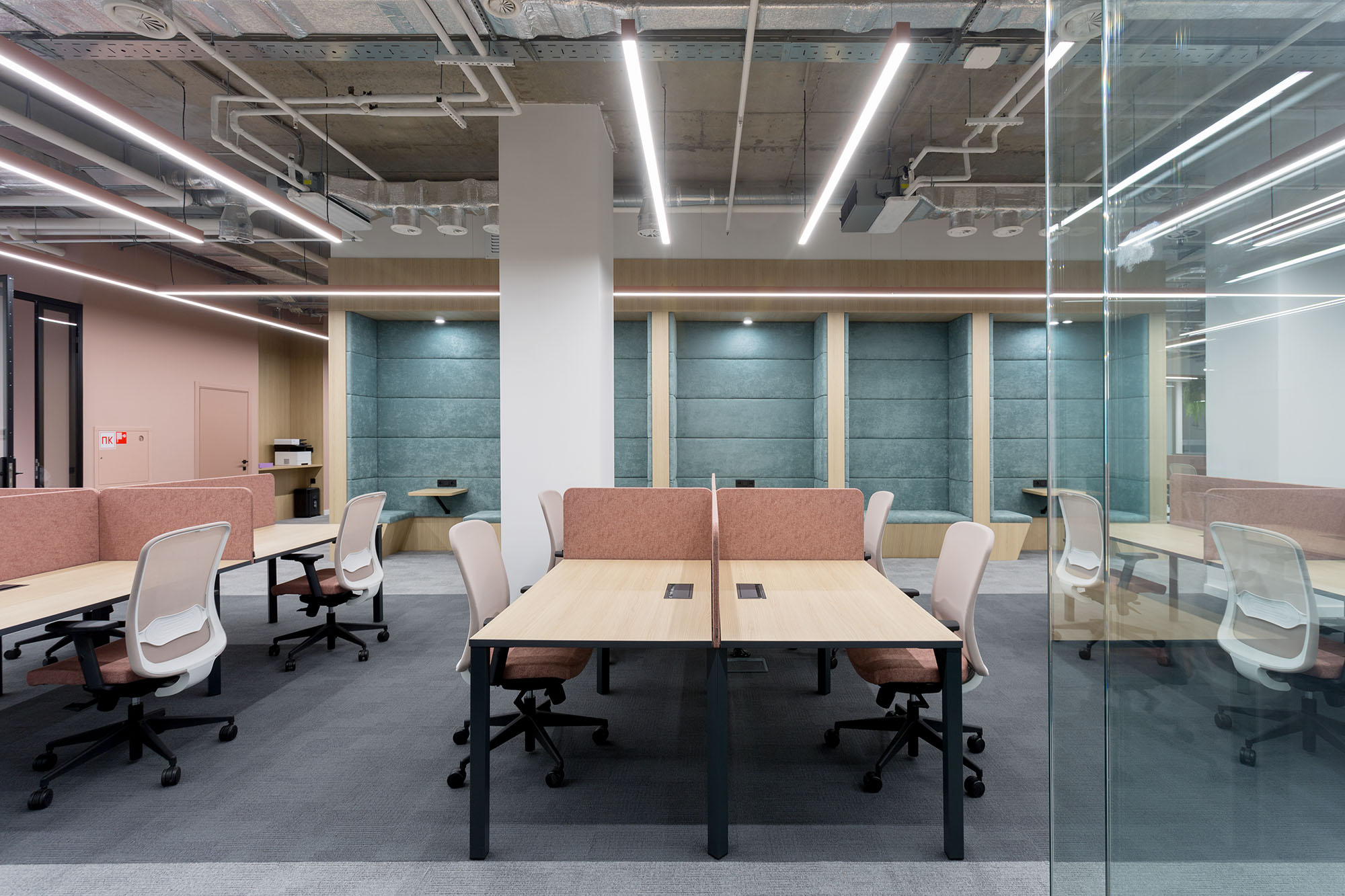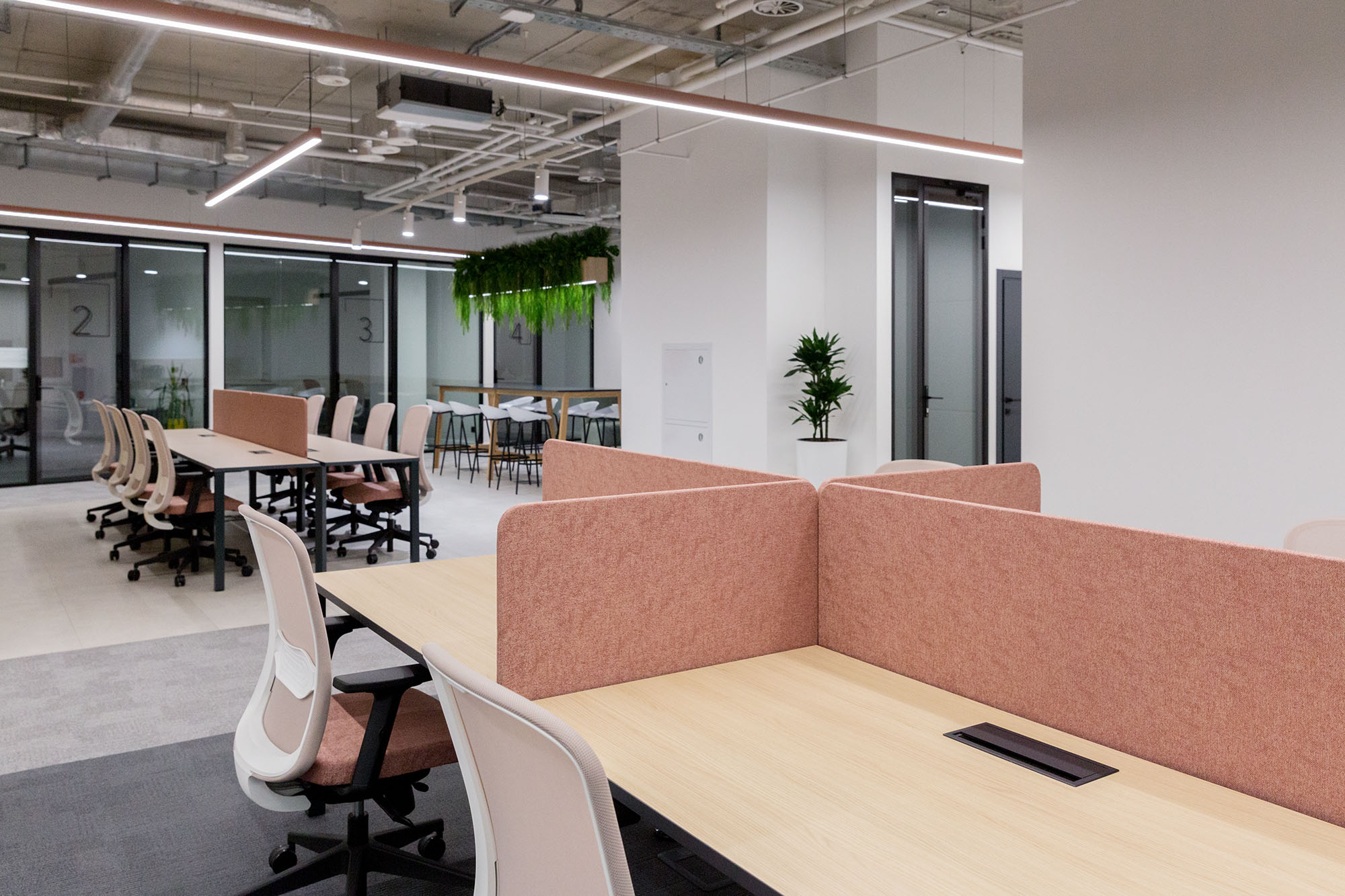 Коворкинг расположен на 2 этаже. Новый, современный гибкий офис рассчитан на 140 рабочих мест и оборудован всем необходимым для комфортной работы с перерывами на отдых.
