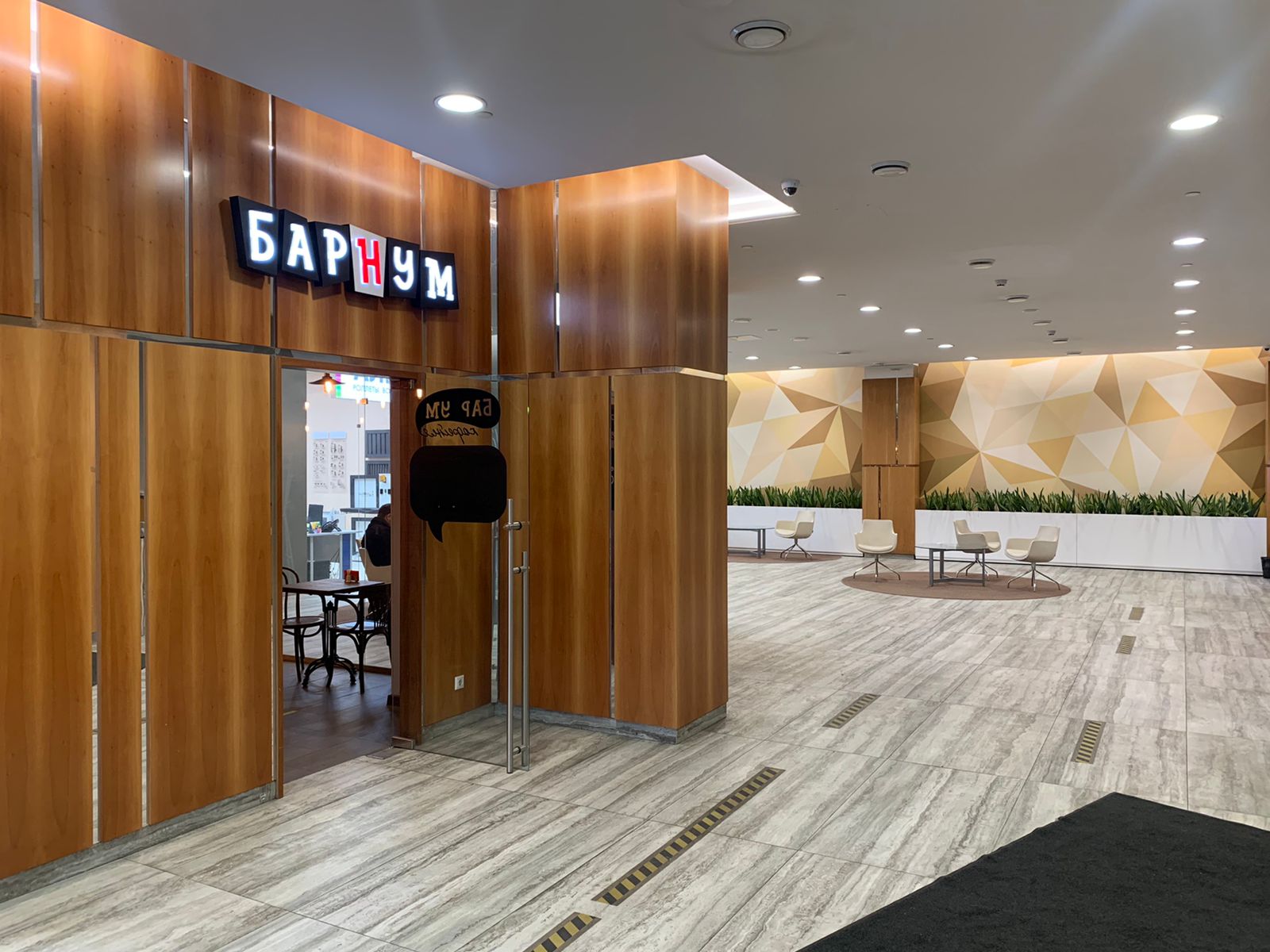 Кофейня «БАРНУМ» расположилась на первом этаже бизнес-центра «SK Plaza». За панорамным остеклением есть несколько посадочных мест, на которых может разместится компания от двух до восьми человек. Винтажная мебель идеально вписалась в новый ламповый интерьер, просторный и функциональный. Здесь удобно проводить встречи и работать за ноутбуком. Есть стеллаж с книгами из коллекции владельца заведения и настольные игры. Варят на зерне от «The Coffee Soldiers», «Camera Obscura». Тут же вам переложат сварить любимый напиток на альтернативном молоке или попробовать что-то новое из сезонного меню.