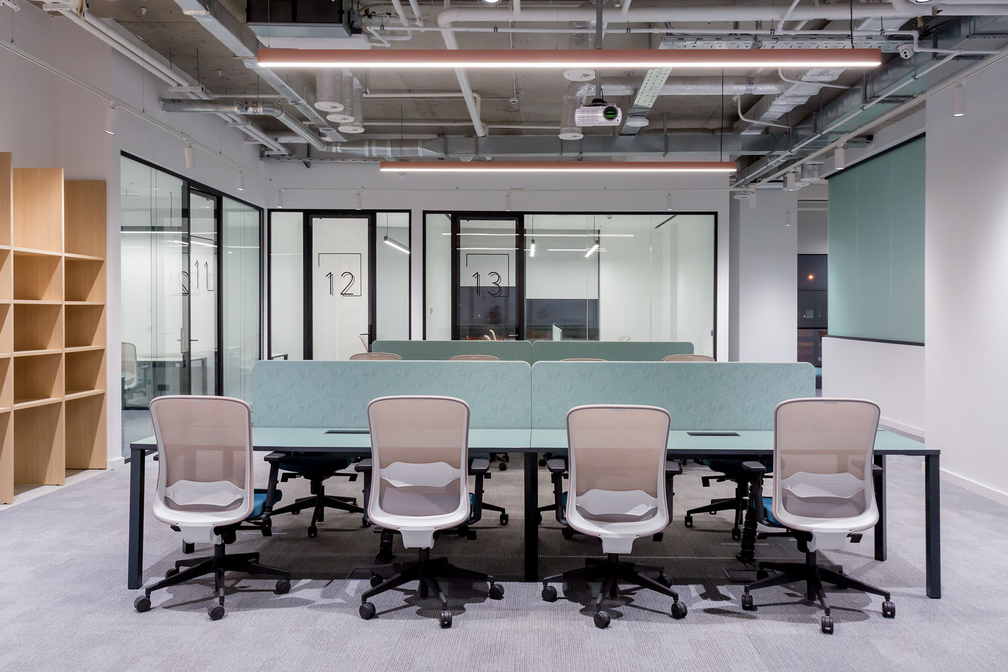 Коворкинг расположен на 2 этаже. Новый, современный гибкий офис рассчитан на 140 рабочих мест и оборудован всем необходимым для комфортной работы с перерывами на отдых.